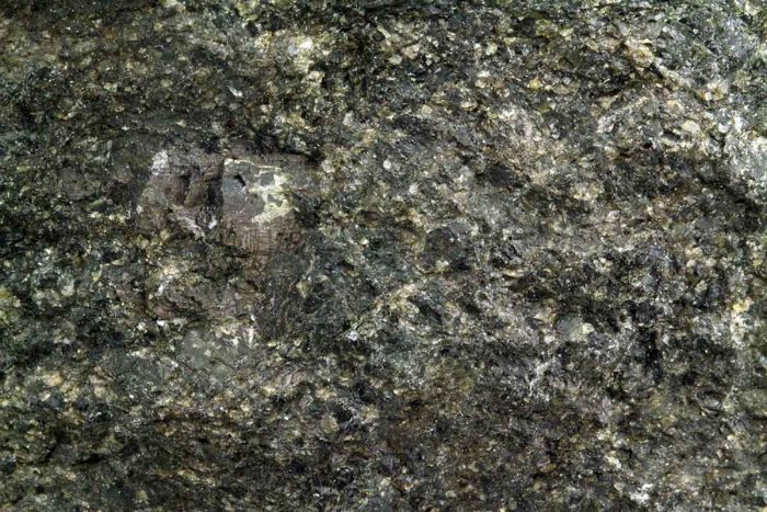 Импрегнациите по повърхността му показват наличието на примеси от минерали като манган, желязо и хлор.