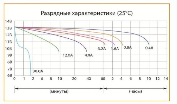 Par exemple, la désignation 50 A / h signifie qu'à un courant égal à 1A, la batterie fournira de l'énergie pendant 50 heures, ou à un courant de 2 A, elle fonctionnera 25 heures jusqu'à la prochaine charge.