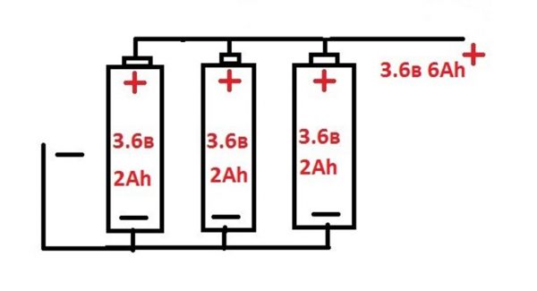 Les règles de connexion s'appliquent de la même manière que pour les méthodes d'inclusion décrites précédemment. Dans de tels appareils, il est habituel de connecter des batteries ayant les mêmes caractéristiques. En appliquant des «batteries» à partir d'un lot, on obtient approximativement la même résistance interne des composants.