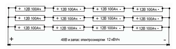 Plusieurs produits sont connectés en série, obtenant la tension souhaitée. Ensuite, ces chaînes sont connectées en parallèle, gagnant en qualité d'assemblée générale.