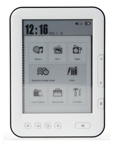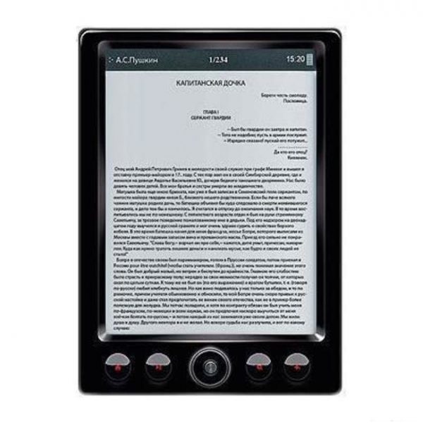 - Explay TXT.Book.B62 avec un écran de 6 pouces et une matrice E-ink VizPlex. Le livre est relativement léger - 152g, et le contrôle externe est représenté par des boutons ronds, ce qui rend son utilisation encore plus confortable. L'appareil est capable de travailler jusqu'à 20 heures (4000 feuilles), il y a aussi la possibilité de charger depuis le réseau. La RAM comprend 2 Go avec la possibilité d'étendre à 32 Go.