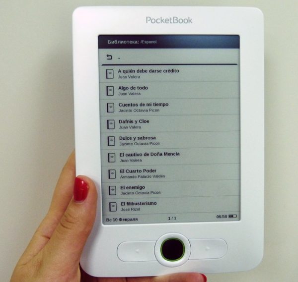 - PocketBook 631 Touch HD - un lecteur phare avec de nombreuses fonctionnalités intéressantes au prix de 12 490 roubles. Technologie Carta, grande résolution de 1448 x 1072 pixels, prise en charge Wi-Fi, fente pour carte mémoire, lecteur, ainsi que la synthèse vocale à haute voix.