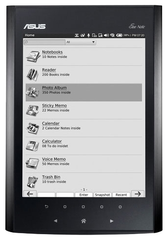 En plus des fonctions inhérentes à tous les livres électroniques, Asus a ajouté un microphone et un haut-parleur de bonne qualité, un appareil photo à ce modèle. Il existe un mode bloc-notes et une prise en charge des formats docx et xlsx. Le nouveau livre a coûté aux propriétaires 7,5 mille roubles.