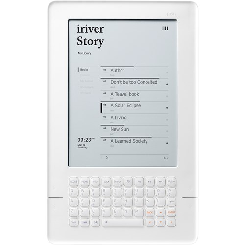 Iriver Story HD ressemble à un mini-ordinateur grâce au clavier qui s'y trouve, ce qui facilite la recherche du bon contenu
