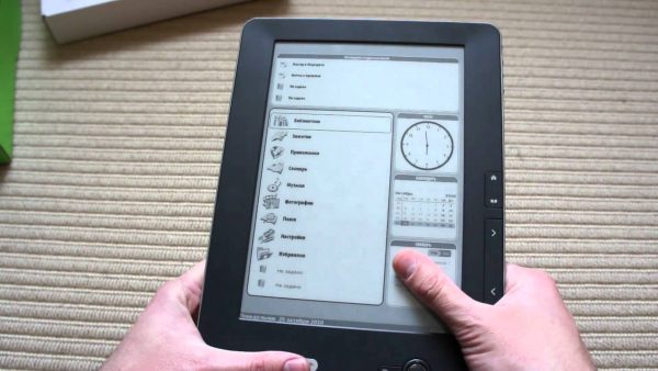 Parmi les lecteurs du constructeur, le modèle se positionne comme le plus simple et le plus léger. Il note également la fonctionnalité la plus large possible, la possibilité de travailler avec les 15 formats de texte les plus populaires que l'utilisateur peut choisir lui-même, en fonction du livre.