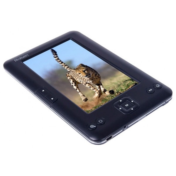 Il s'agit du modèle de départ de la gamme d'e-books publiés sous la marque Rolsen. Le poids de l'appareil n'est que de 150 g. Le modèle est assez compact, sa longueur est de 150 mm, sa largeur 95 mm et son épaisseur 9 mm. L'écran d'une diagonale de 5 pouces permet non seulement de lire des livres électroniques, mais aussi de visualiser des photos, des vidéos et d'écouter de la musique. Les écouteurs sont livrés avec le gadget. Dans la boîte, vous trouverez également un chargeur alimenté par le réseau, un câble USB et un étui en tissu.