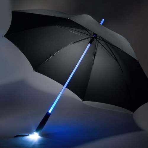 Avantages du parapluie: il devient souvent sombre par temps nuageux et pluie. Afin de rendre tout visible, un dispositif comme un parapluie avec des ampoules a été inventé. Les ampoules peuvent changer de couleur: jaune, vert, rouge, bleu, rose, violet et orange.