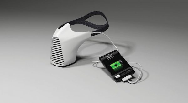 Avantages d'un tel appareil: Un masque innovant qui permet de recharger des appareils mobiles en raison de la respiration humaine. Les courants d'air expirés par une personne sont convertis en électricité et chargent l'appareil.