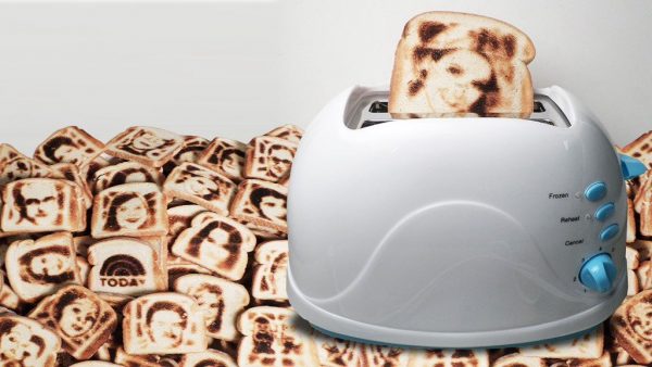 Avantages un tel grille-pain: Certainement un appareil inhabituel qui permet de faire une image sur un toast. Le grille-pain scanne le visage et le brûle sur un morceau de pain. C'est assez intéressant le matin de manger votre photo sur un morceau de petit déjeuner.