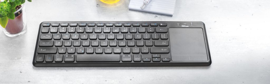 Le clavier sans fil Trust Mida dans ses paramètres n'est pas différent des modèles présentés précédemment. Les touches à profil bas sont plus silencieuses que les touches traditionnelles et offrent également un confort de frappe. Cet accessoire fonctionne bien en combinaison avec un téléviseur et des appareils mobiles avec Android et iOS. La finition est à un niveau très élevé.