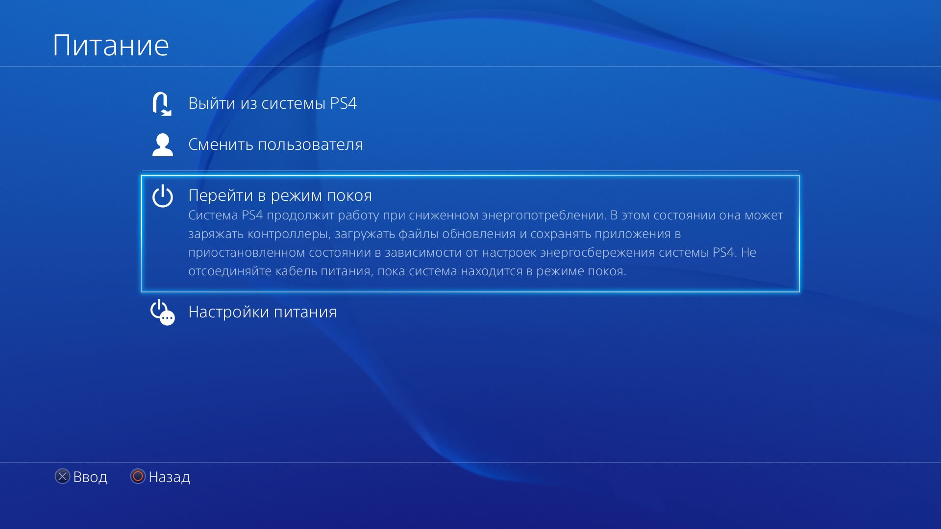 Par analogie avec un PC, le système PS4 en mode veille continue d'être dans un état prêt, mais consomme en même temps 2 fois moins de ressources et d'énergie. De nombreux utilisateurs dans de tels cas mettent le téléchargement de jeux depuis Internet en arrière-plan ou rechargent simplement la console.