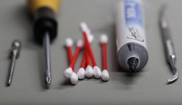 - Pour nettoyer les pièces de la poussière et de la saleté, une solution d'alcool à 3% est utilisée, qui est appliquée sur un coton / bâton.
