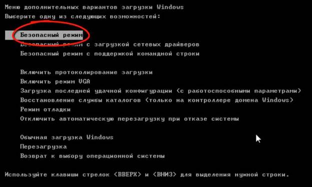 - Parmi les options proposées, sélectionnez «Mode sans échec». Pour les utilisateurs avancés, vous pouvez télécharger la prise en charge de la ligne de commande et utiliser les outils d'administration pour vérifier le fonctionnement de ce composant.