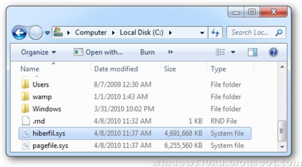 - Le fichier hiberfile.sys prend de l'espace sur le disque dur.
