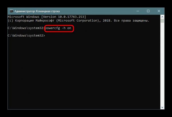 - À l'invite de commande, entrez powercfg / h sur. Ensuite, vous devez appuyer sur Entrée.