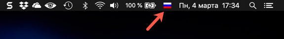 - en mettant en surbrillance la disposition actuelle, à côté du drapeau dans la barre de menu, le nom indiqué dans le premier paragraphe sera affiché;