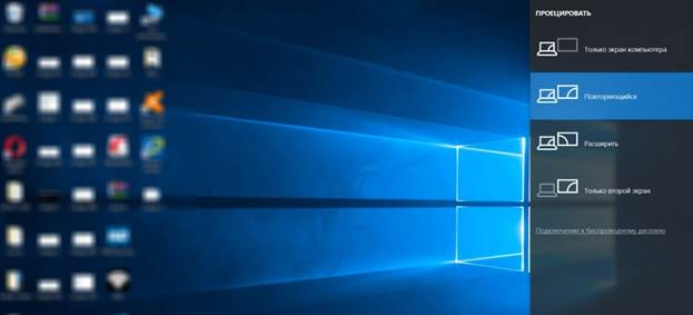 Sur le clavier, appuyez sur WIN + P. Si la réaction ne s'est pas produite, vous pouvez essayer d'appuyer sur le bouton spécial FN + P.