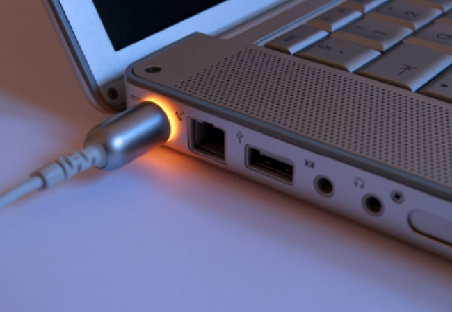 - Connectez le chargeur à l'ordinateur portable et attendez que la charge soit terminée.
