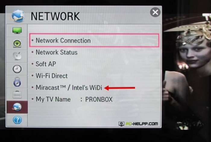 - Lors de la connexion, vous devez activer WiDi sur le téléviseur. Si vous ne trouvez pas cette fonctionnalité, vous devez activer la connexion Wi-Fi. Dans un ordinateur portable, vous devez disposer de l'utilitaire Intel Vayles Display, conçu pour un moniteur sans fil.