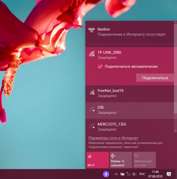 - Cliquez sur le signe «Accès au réseau Internet». Dans la liste, vous devez sélectionner un réseau et l'ouvrir en cliquant sur le bouton gauche. Cochez la case à côté de "Se connecter en mode automatique" et cliquez sur "Se connecter". Si nécessaire, entrez un mot de passe.