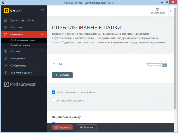 Serviio est un programme très facile à utiliser pour créer un canal DLNA. Possède une interface en russe.