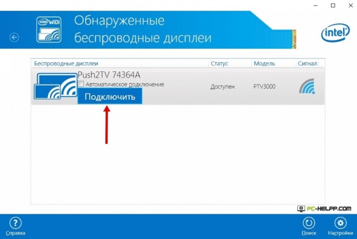Dans WiDi, il est possible de dupliquer une image d'un écran de PC en utilisant un canal sans fil. Sur les PC Intel de 3 générations avec fonction Wi-Fi et carte graphique Intel, il est possible d'utiliser pleinement les capacités de ViDi Miracast. Le pilote de l'écran sans fil devra probablement être téléchargé à partir du site Web d'Intel. Précisément, cette option est prise en charge par un PC avec une carte Wi-Fi et avec le système d'exploitation Windows 8.1 préinstallé.