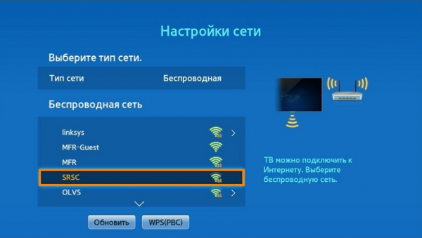 - Réglez le type sur «Sans fil». Les réseaux disponibles seront déterminés. Connectez le point auquel le PC est déjà connecté.