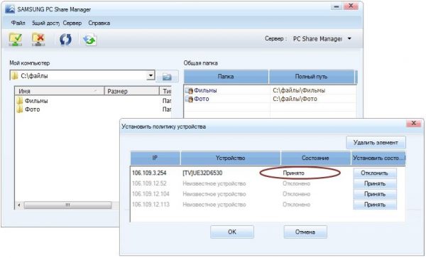 - cliquez sur «Accepter» à droite de l'appareil auquel l'accès aux fichiers sera autorisé;