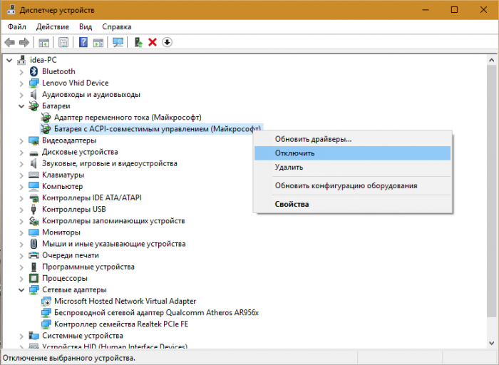 - Cliquez sur «Batterie avec contrôle compatible ACPI» avec le bouton droit et désactivez le service dans le menu contextuel et redémarrez l'ordinateur portable.