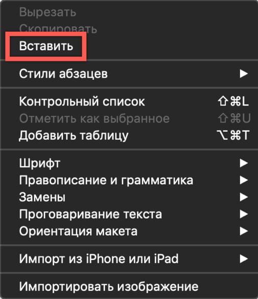 - Commande + V - collez un fragment du presse-papiers dans le document.