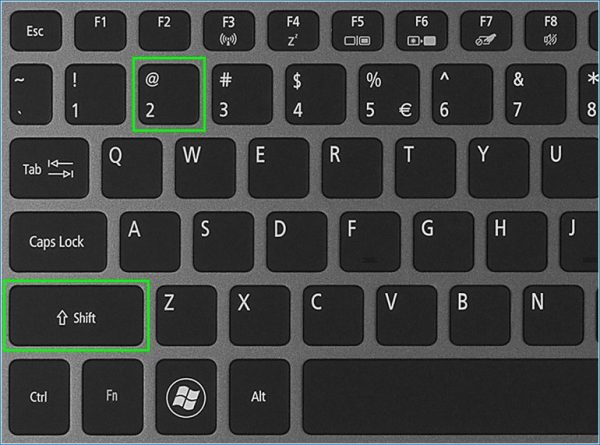 La manière la plus simple d'entrer ce caractère est d'utiliser le clavier. Examinez de près la ligne numérique supérieure. Sur le numéro 2, juste, et "chien" se trouve. Pour le saisir, vous devez basculer vers l'anglais et, en appuyant sur la touche Maj, cliquez sur les deux. C'est tout - l'icône est insérée dans le texte.