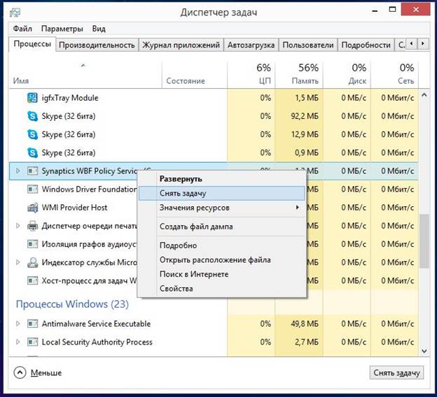 Il arrive très souvent qu'il n'y ait aucun moyen de désactiver le pavé tactile par l'une des méthodes ci-dessus en raison d'une panne physique des touches ou d'un manque de désir de grimper dans les menus longs du système d'exploitation. Le moyen le plus simple est d'appeler le gestionnaire de tâches en utilisant la combinaison Ctrl + Alt + Suppr, après quoi vous devez sélectionner "gestionnaire de tâches" dans la fenêtre qui apparaît.Ensuite, vous devez choisir un appareil avec le nom Synaptics activé, le nom ETD est beaucoup moins courant, dans les versions piratées de Windows 7, le fonctionnement du pavé tactile peut être masqué par les processus système standard et il peut être impossible de distinguer le traitement du son en arrière-plan du pavé tactile, il est donc préférable de ne pas le risquer.