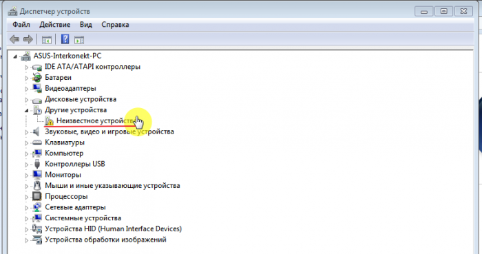 Parfois, un téléphone peut «se cacher» sous un appareil inconnu (ils peuvent être identifiés par un triangle jaune avec un point d'exclamation). Pour savoir exactement de quoi l'icône est responsable, vous devez déconnecter le câble USB de l'ordinateur. Si l'appareil a disparu de la liste, cela signifie qu'il s'agit d'un smartphone qui n'est pas reconnu faute de pilotes nécessaires.