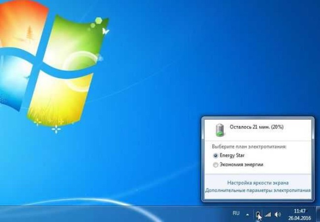 Après avoir déchargé la batterie à un niveau critique, l'utilisateur verra une notification de Windows indiquant qu'il doit être chargé. L'icône de la barre sera complétée par un point d'exclamation dans le triangle jaune.