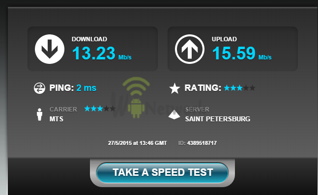 - Speedtest.net - en le lançant, un utilisateur pourra obtenir un bref rapport après le test. De plus, le service permet d'utiliser en plus des fonctions - comparer les résultats avec les indicateurs d'autres utilisateurs, stocker des indicateurs pour toutes les vérifications d'un utilisateur spécifique, recevoir des données sur le fournisseur avec les meilleurs paramètres réseau.