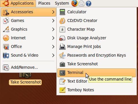 Pour démarrer les diagnostics de l'appareil, vous devez procéder comme suit: Applications / Accessoires / Terminal.