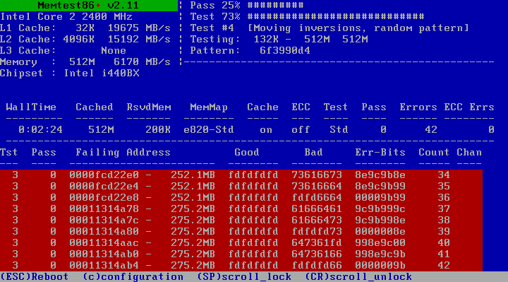 Vous pouvez vérifier la RAM en téléchargeant le programme gratuit memtest86 + sur le site officiel. Après le téléchargement, vous devez créer une image flash ou CD. Vous pouvez ensuite exécuter l'utilitaire en décompressant les données de l'image ou en les lançant directement via le BIOS. Pendant le test, l'écran affichera: