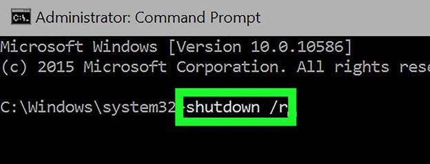 - À l'invite de commande qui s'ouvre, entrez shutdown / r.