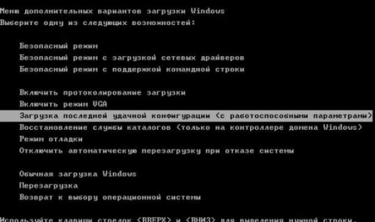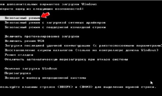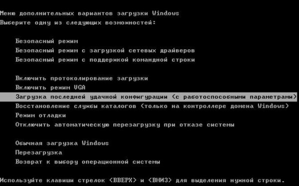 Si cette action ne vous aide pas, vous devez redémarrer l'ordinateur portable avec la touche F8 et entrer dans le menu de démarrage. Vous devez y trouver la ligne "Mode sans échec" et la sélectionner à l'aide du clavier.