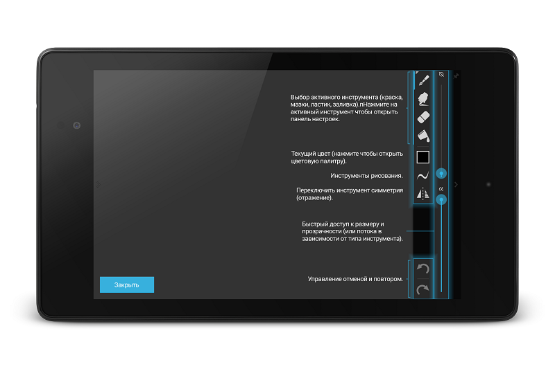 Cette application permet de simuler le dessin sur une tablette graphique. Il dispose de nombreux outils de créativité. La principale caractéristique de l'application est la possibilité de créer des images de haute qualité avec un dessin et un enregistrement détaillés du processus.