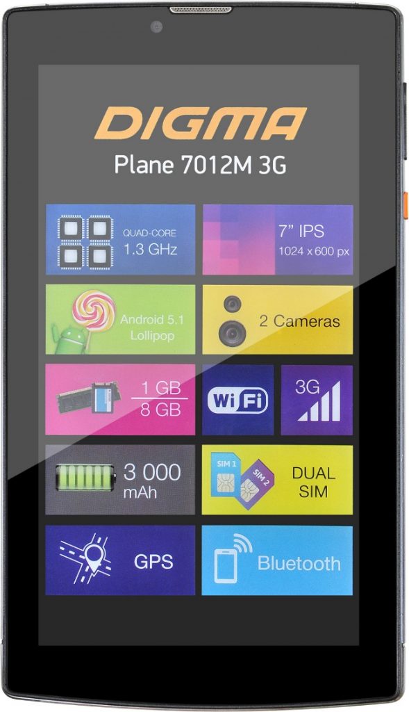 Il s'agit d'un appareil compact sur le système d'exploitation Android 5.1 avec un processeur 4 cœurs MediaTek MT8321 1300 MHz. La quantité de mémoire interne est de 8 Go, il y a un emplacement pour carte microSDXC. La résolution maximale de l'écran tactile capacitif avec une diagonale de 7 "est de 1024 × 600 MP. L'appareil est équipé de caméras avant et arrière à 0,3 et 2 MP, respectivement. La tablette prend en charge la norme mobile 3G. Il est également capable de transmettre et de recevoir des informations via Wi-Fi et Bluetooth. L'appareil est équipé d'un microphone intégré, haut-parleur, accéléromètre, module GPS, il y a une fonction d'orientation automatique de l'écran. Capacité de la batterie 3000 mAh.