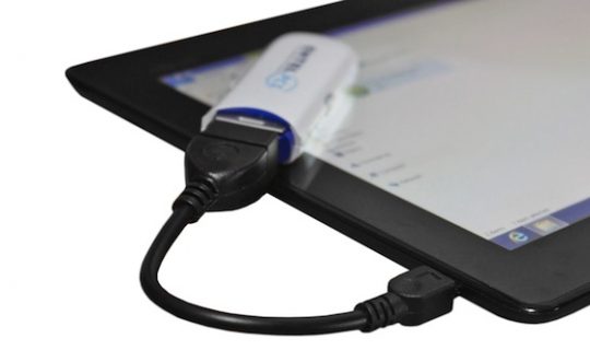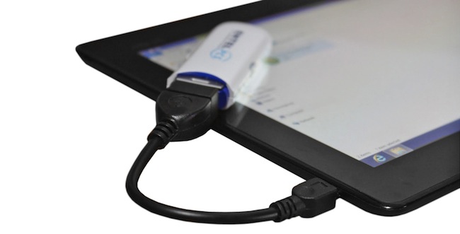 Le principal inconvénient des tablettes sans fonction d'appels téléphoniques est le manque de capacité à se connecter à l'Internet mobile. Mais les propriétaires de gadgets avertis ont trouvé un moyen de sortir de cette situation difficile. Si la tablette est équipée d'un port USB, la carte SIM peut être insérée dans un modem en option. Connectez-vous à la tablette à l'aide du câble OTG.