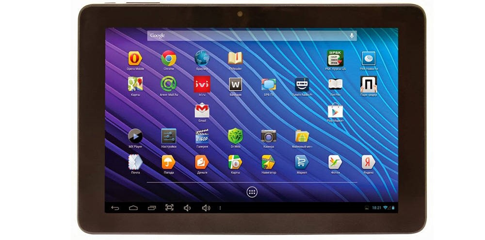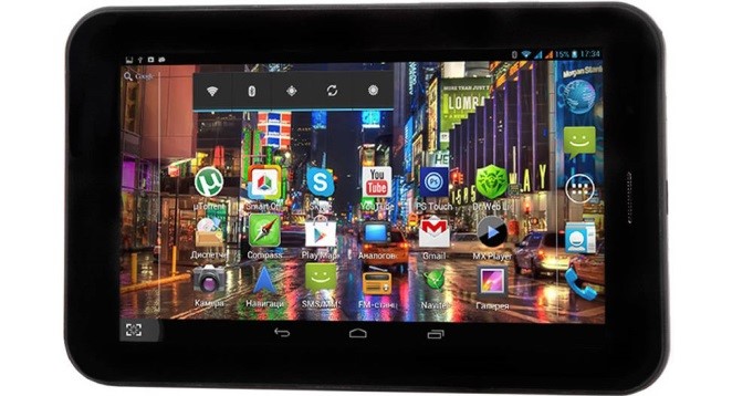 Un appareil avec la possibilité de recevoir la télévision analogique. Malgré la qualité moyenne du processeur et de l'ancien système d'exploitation, la tablette sera utile si la télévision numérique ne fonctionne pas. Il a 4 Go de mémoire, mais elle peut être augmentée jusqu'à 32 Go, un moniteur de 7 pouces, Wi-Fi, Bluetooth et une carte SIM.