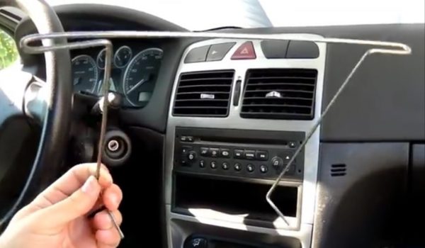 - Nous retirons l'ancienne radio du panneau de voiture.