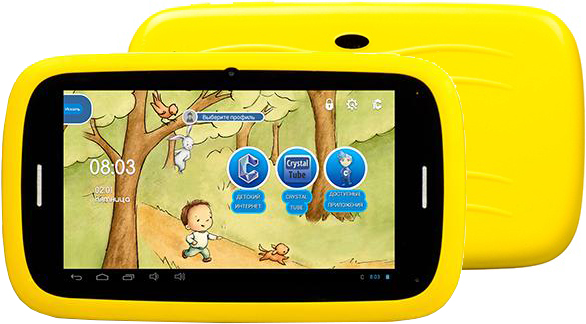 Conçu pour les enfants d'âge moyen. Il a un affichage lumineux et la présence de thèmes caricaturaux. Assez solide et fiable, qui est fourni par un matériau à haute résistance. L'écran est comme d'habitude de 7 pouces avec une extension WSVGA et une matrice IPS TFT efficace, qui offre une excellente qualité d'image. Un processeur standard avec 2 cœurs et 512 Mo de RAM. Il y a un espace de stockage intégré pour les informations de 4 Go, qui peut être étendu jusqu'à 32 Go. Une russification de haute qualité est requise.