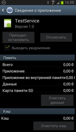 4. Dans les paramètres du smartphone, sélectionnez «Toutes les applications» - «Service de test» - «Arrêter» - «Effacer».