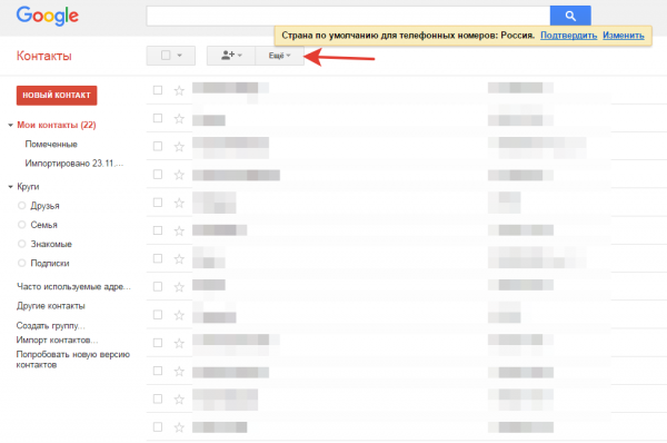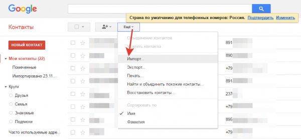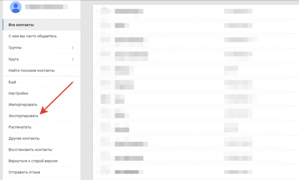 - Entrez les contacts, dans le coin supérieur, cliquez sur "gestion", et dans le menu déroulant, sélectionnez l'option d'importation / exportation. Les détails sont visibles sur une capture d'écran.