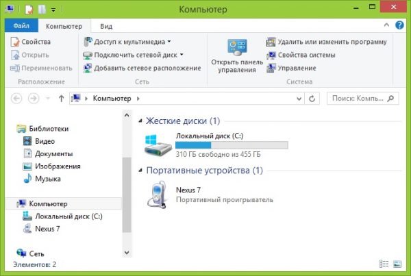- Après cela, vous devez vous rendre chez le chef d'orchestre. Ouvrez le raccourci «Poste de travail» et «Lecteurs locaux». Dans le sous-élément «Autre», l'icône du smartphone s'affiche, sur laquelle il faut cliquer;