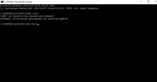 - nous revenons à la ligne de commande et entrons la commande «adb shell», le processus de connexion de l'utilitaire ADB au téléphone commencera;