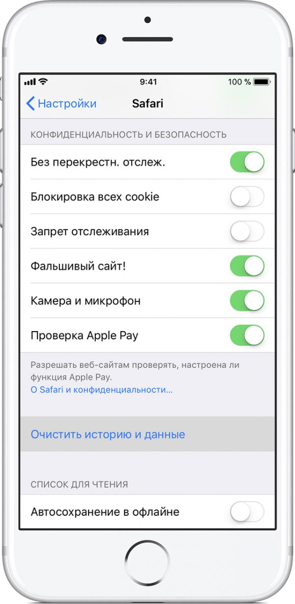 Ouvrez les paramètres de l'appareil et recherchez Safari. Nous sélectionnons et poussons sur "l'historique clair et les données du site Web". Si le bouton ne peut pas être enfoncé, cela signifie que l'appareil a une restriction qui doit être supprimée. Pour ce faire, nous revenons à la section "basique", où nous trouvons les "limitations". Nous entrons le mot de passe défini et supprimons le bloc des «sites Web».